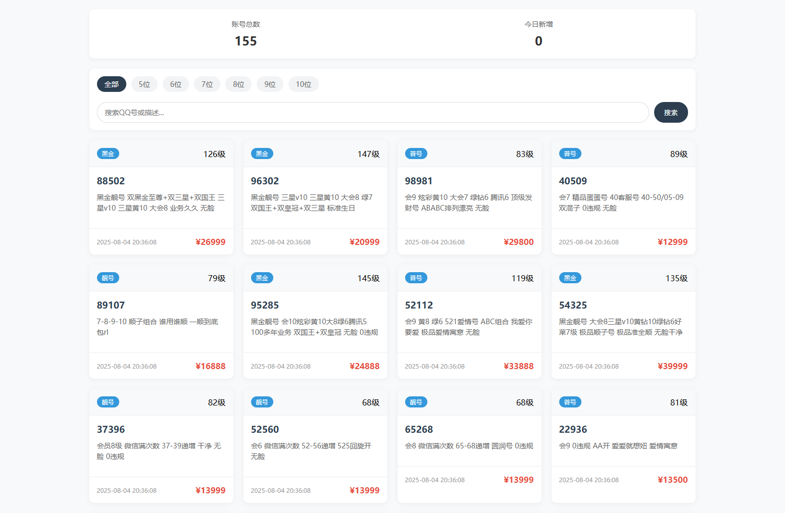 扣扣号码展示网站源码_号码售卖展示系统源码 全开源 带后台七友源码54天前更新关注私信09383227扣扣号码展示网站源码_号码售卖展示系统源码 全开源 带后台此内容为付费阅读,请付费后查看¥4黄金会员免费钻石会员免费立即购买您当前未登录!建议登陆后购买,可保存购买订单付费阅读 加入QQ群 关注微信公众号 联系我们 请求更新 文章最后更新时间:2025-09-04 06:54:23简介: 扣扣号码展示网站源码_号码售卖展示系统源码 全开源 带后台 多套首页模板 附教程 适用于企鹅号码展示,也可用于其他靓号的展示用途,如车牌号之类的。感兴趣的自行下载吧 图片: 此处内容已隐藏,请付费后查看 © 版权声明文章版权归作者所有,未经允许请勿转载。THE END网站源码 喜欢就支持一下吧点赞227 分享QQ空间微博QQ好友海报分享复制链接收藏